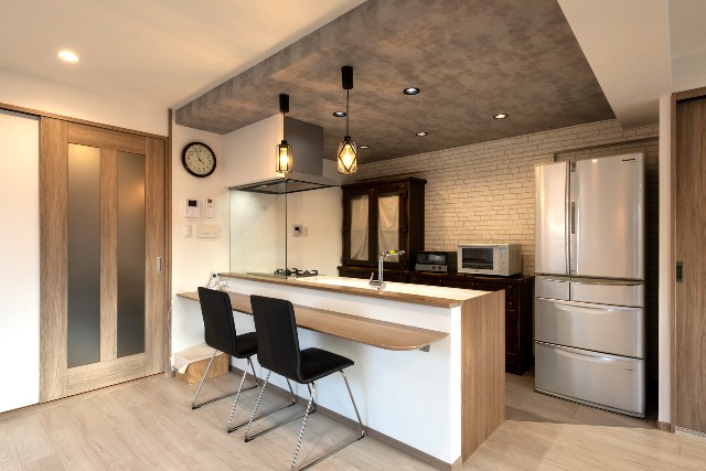 キッチンの上部配管・換気ダクト・レンジフードなど、「見せたくない設備」を隠して、なおかつ照明計画を立てやすい場所もまた、下がり天井の導入が適している空間といえます。