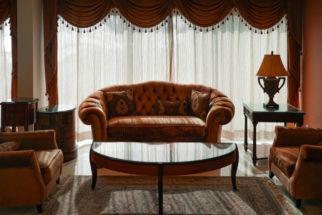 床・壁・天井の色合いに合わせて家具を選ぶことが大切です。ダークウッドの床には革張りソファ、明るい木目には布製ソファなど、素材感を揃えると統一感が出ます。