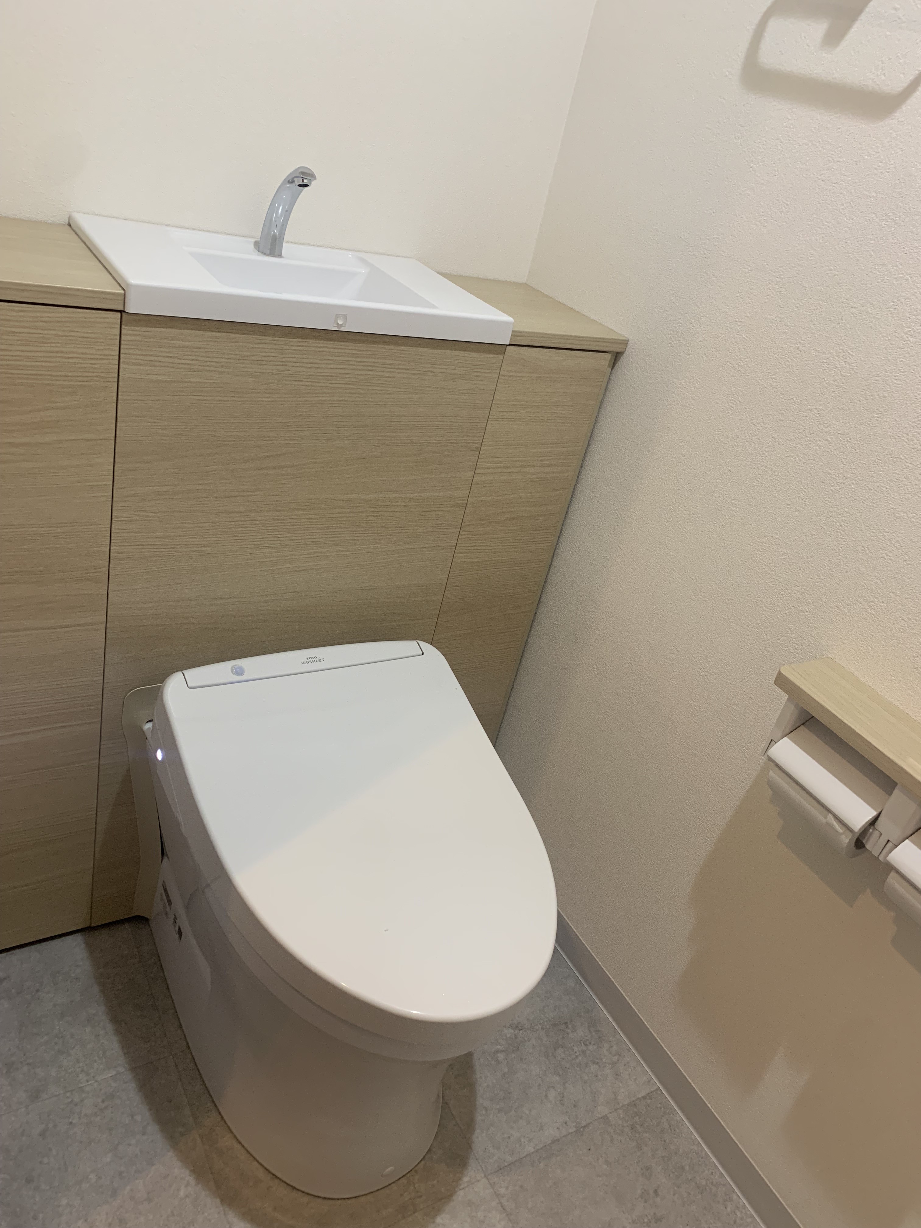 お掃除道具を収納させたい、トイレの雰囲気を変えたい、というお客様のご要望から、TOTOのレストパルを施工させて頂きました。
