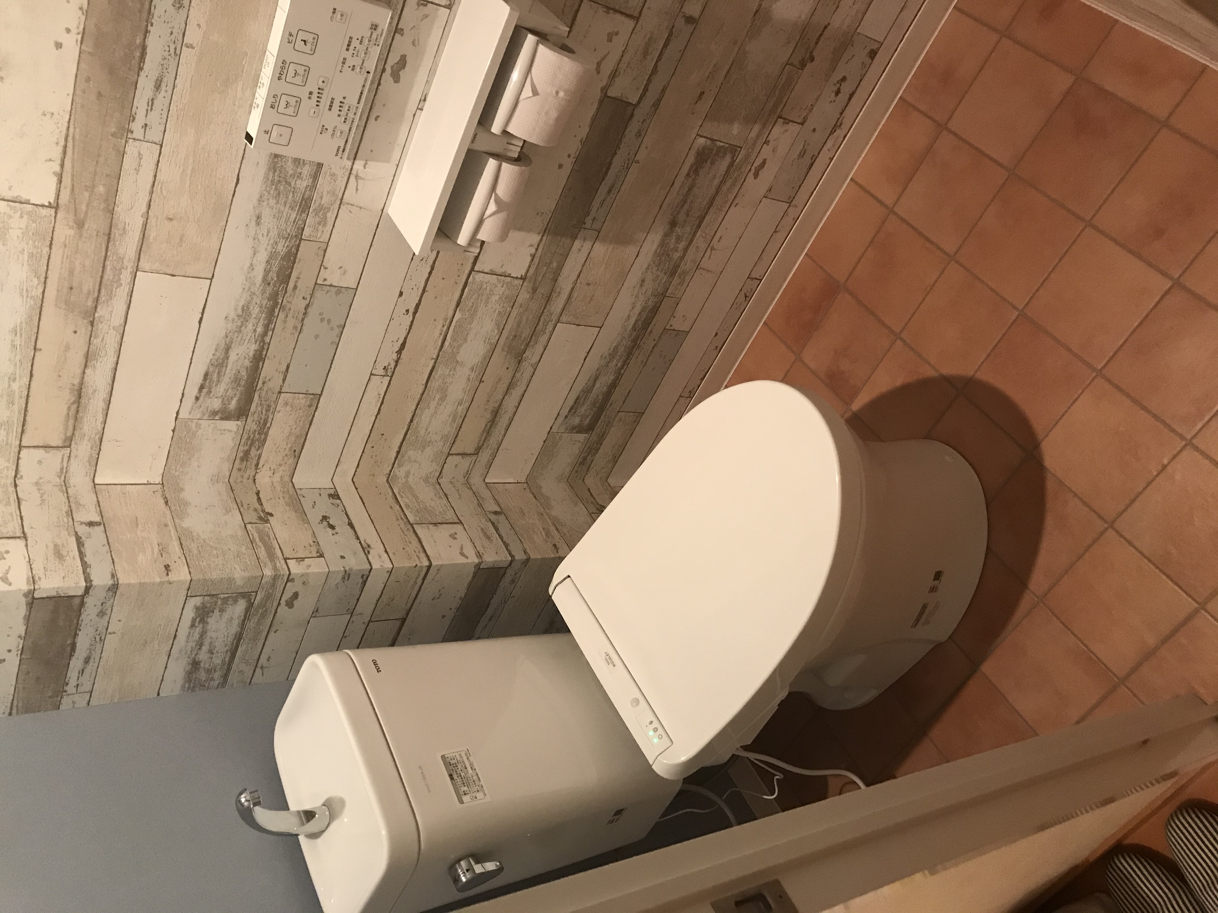 本物のタイルのようなアクセントクロスも、モダンな感じで素敵ですよね。