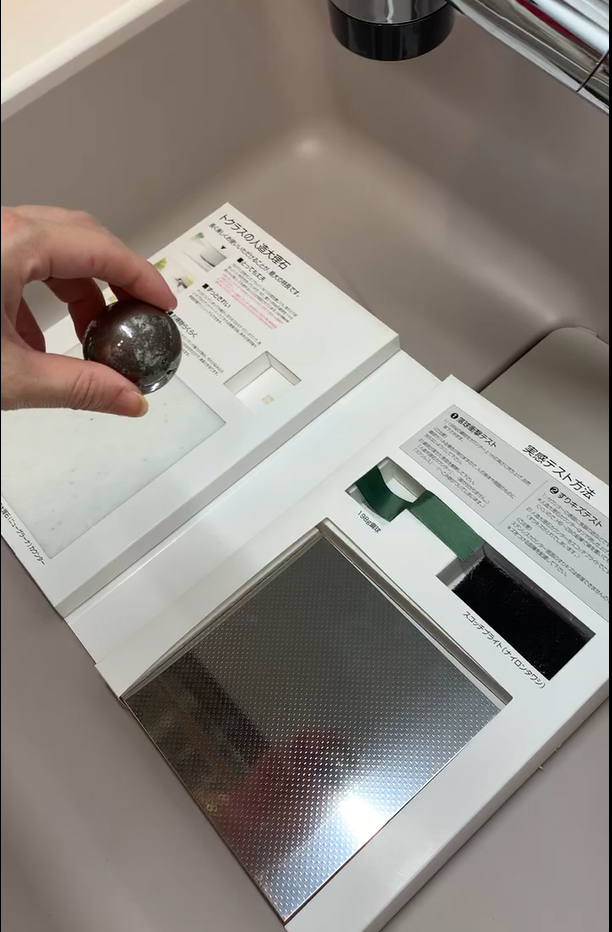 ~トクラスキッチン人造大理石天板の強度実験~の様子をお届けします。