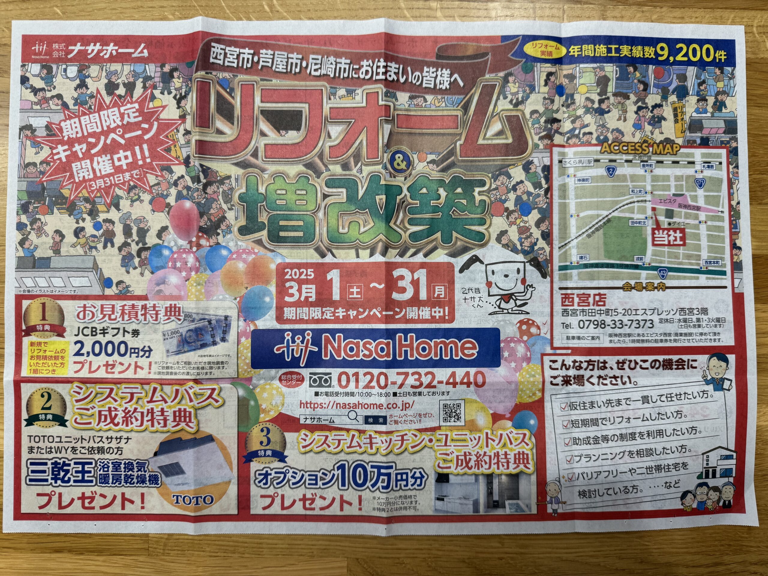 リフォームをご検討されていらっしゃる方は是非ナサホームまでご相談ください。