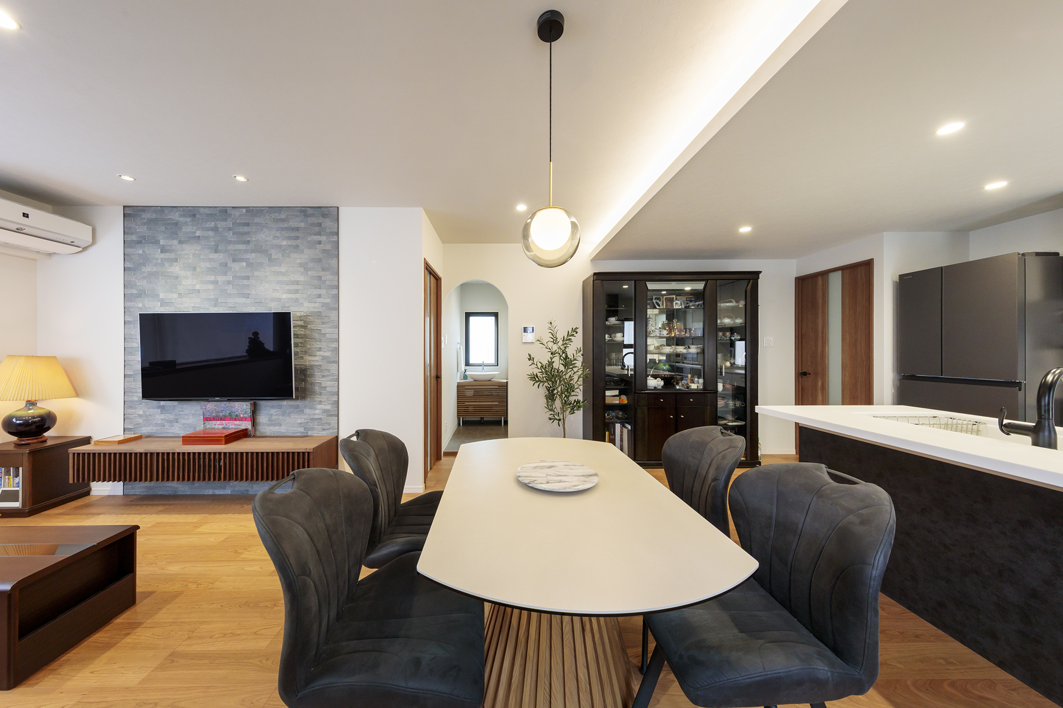 天井やフローリングの木目とも美しく調和し、統一感のある空間に仕上がりました。