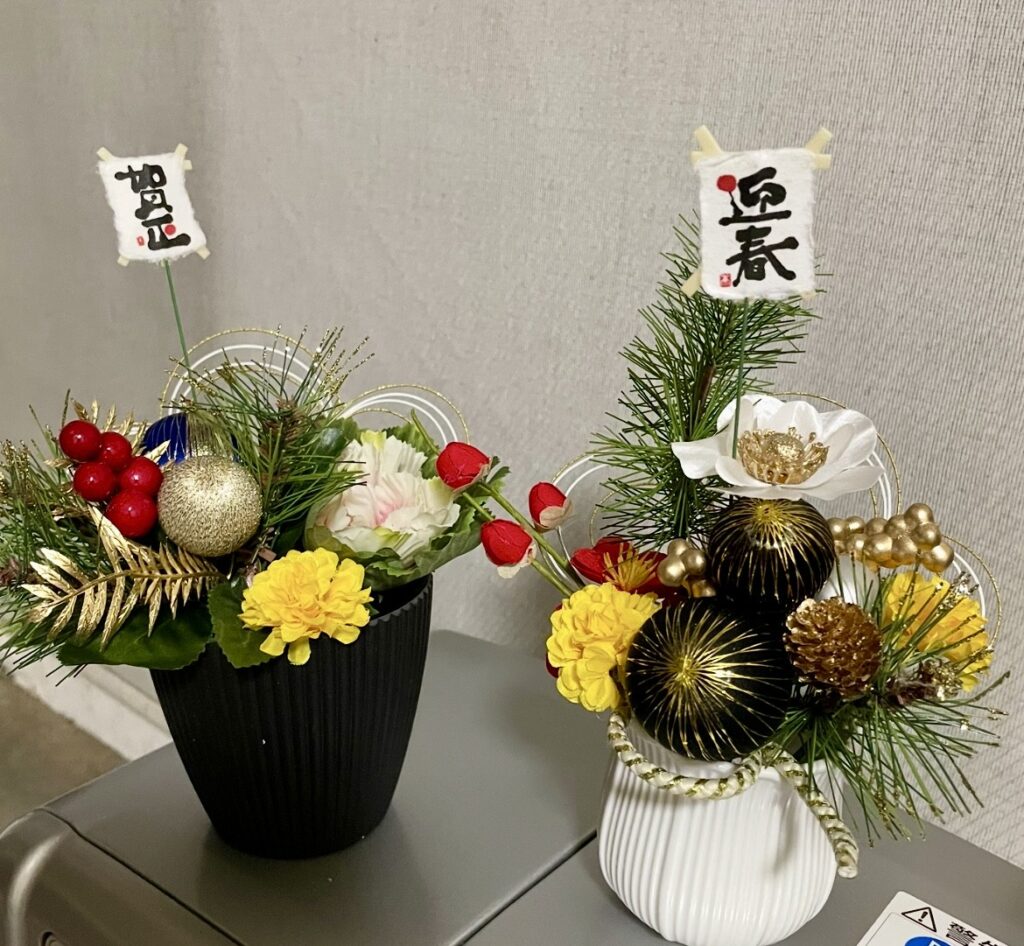少し前の話になりますが、お正月の玄関先に置く小さな花飾りをプレゼント用に作りました。
