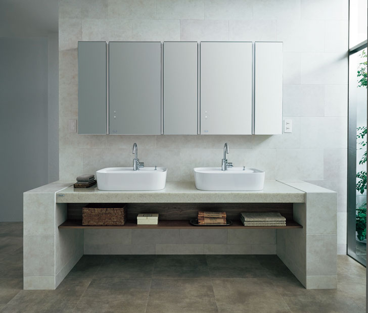 造作家具のような、デザイン性を重視した見た目と、TOTOならではのキレイ除菌水を搭載した水栓も選択可能で、機能性もある洗面化粧台です。