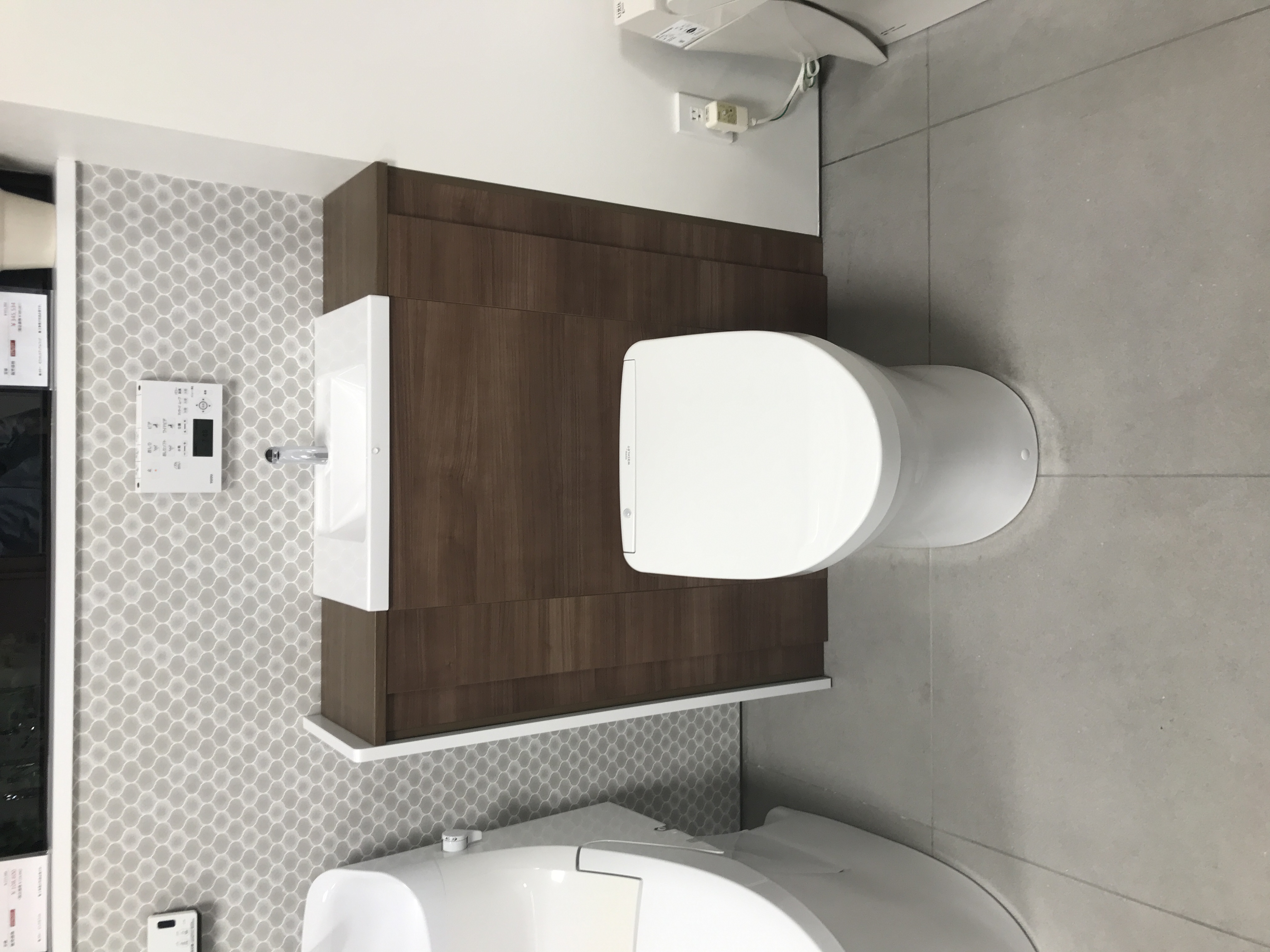 はやりのタンクレスではありませんがキャビネット内にタンクが隠れる「タンクレス風」トイレ。
