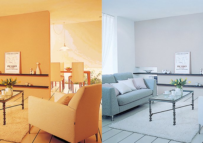 最も明るく感じる色で、キッチンや洗面室、作業部屋に向いています。