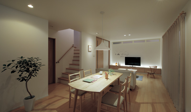 明るすぎず暗すぎないバランスの良い光で、ダイニングなど団らんの場に適しています。
