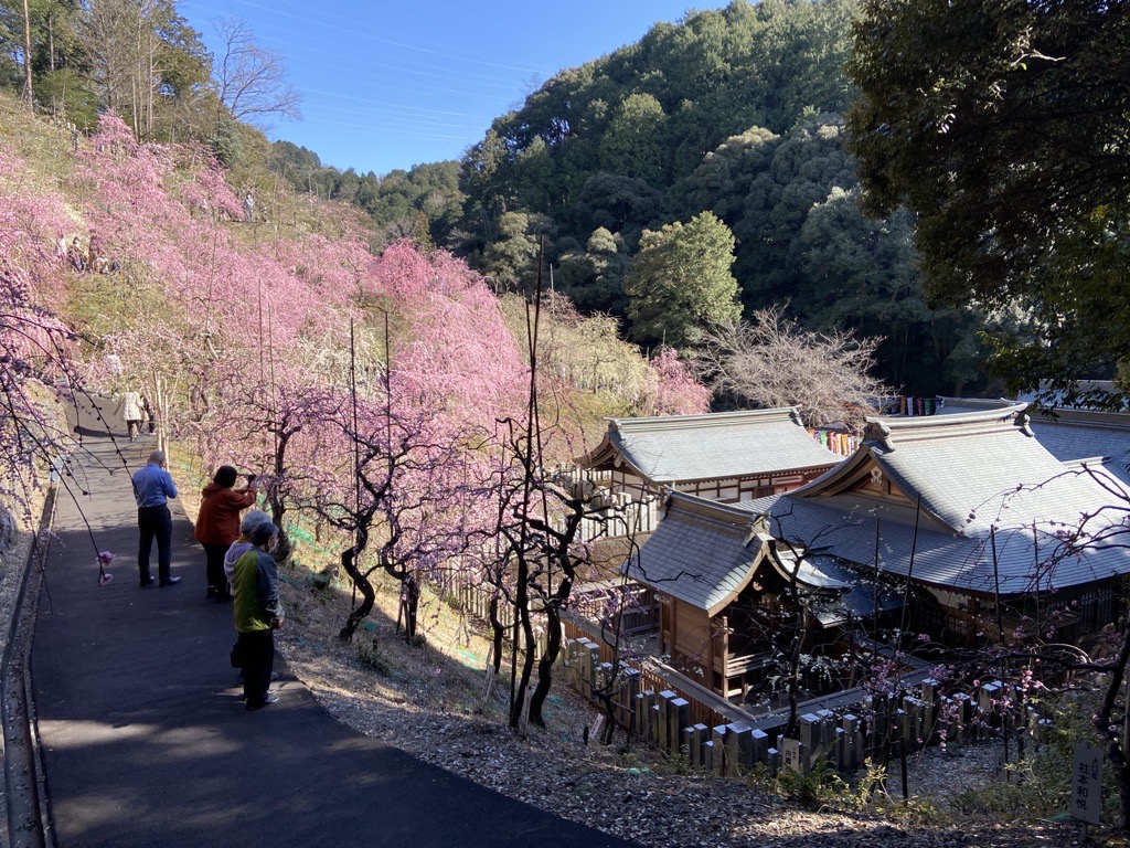 この時期は梅の花が斜面一面に満開でにぎわっています。