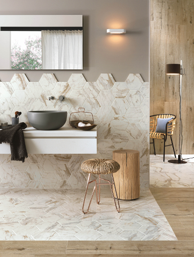 六角型のタイルで組み合わせが可愛く、