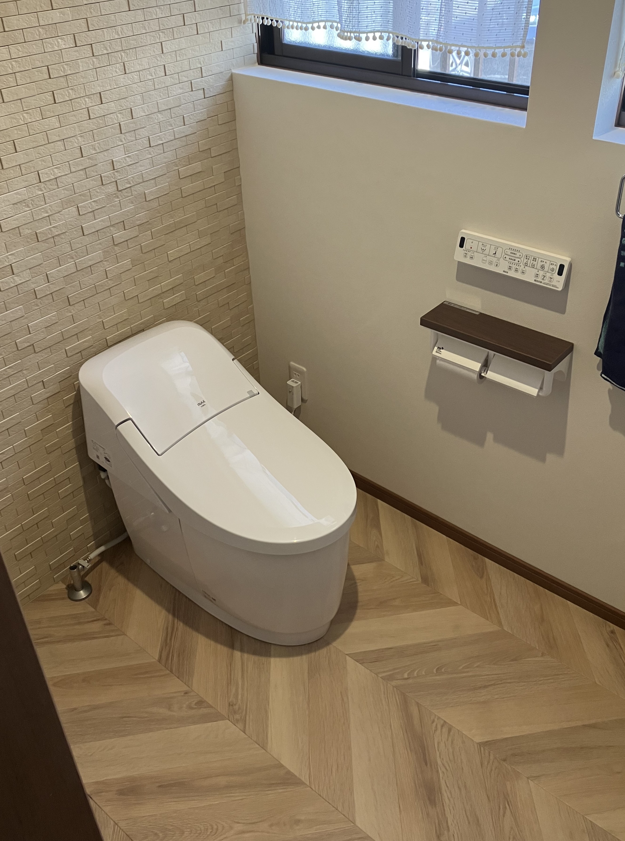 よくあるタンク式のトイレからワンランクアップしたシックな落ち着いた空間に生まれ変わりました。