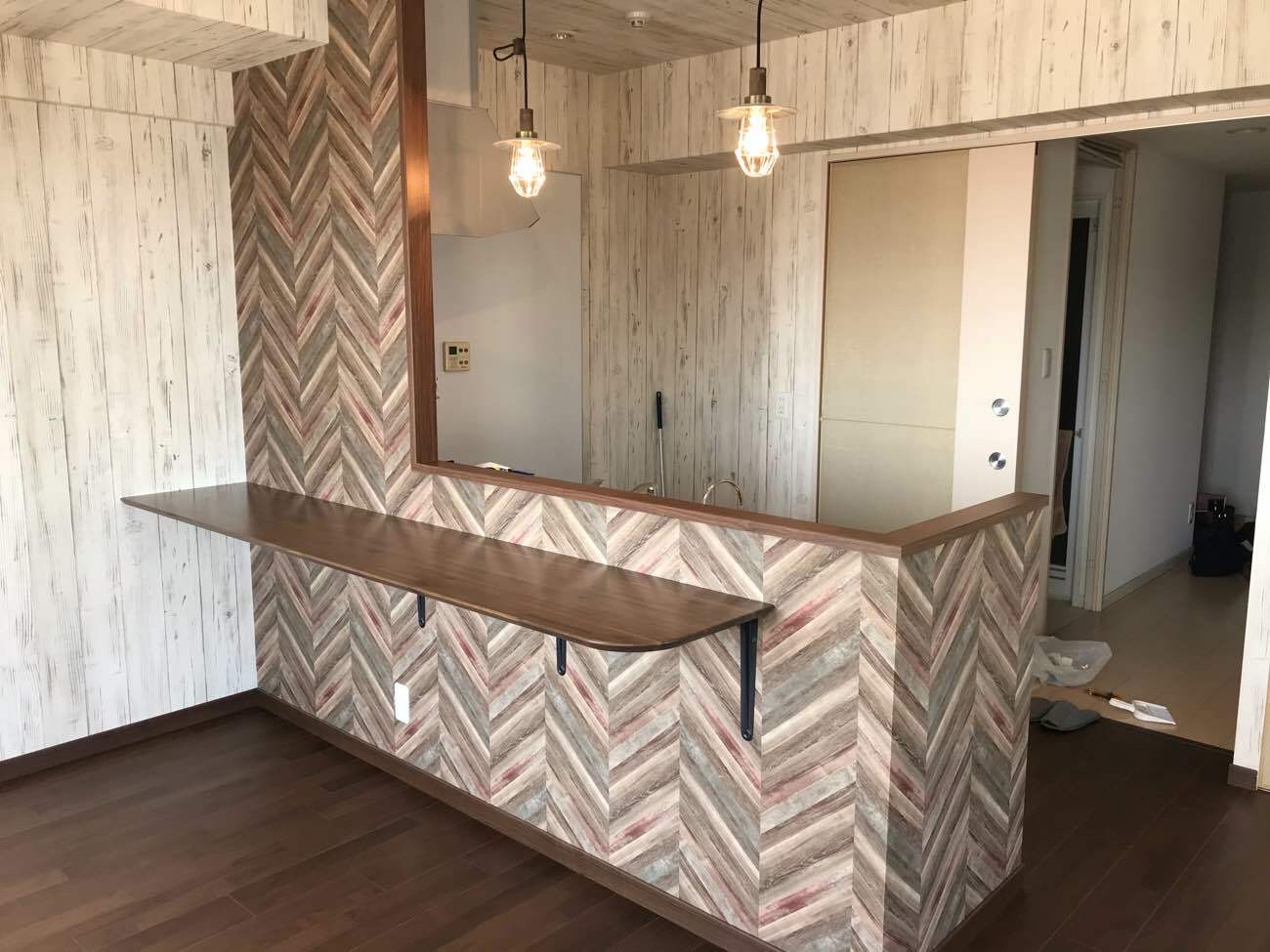 次に、お2人で並んでお食事をされたいとのことで、キッチンの壁にキッチンカウンターを設置いたしました。