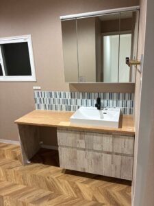 一体型の洗面化粧台と異なるのは造作洗面のようにこだわりを詰め込めます!