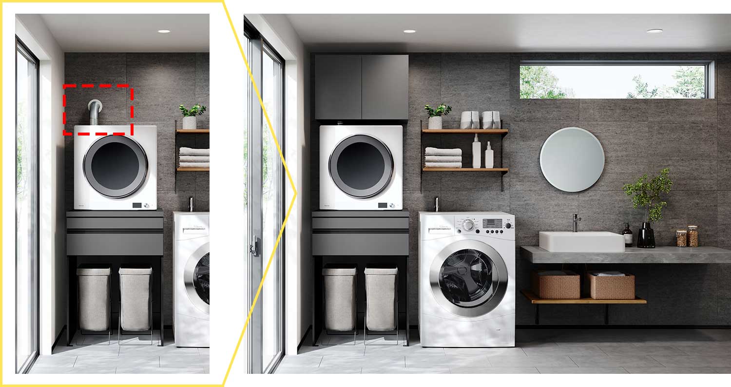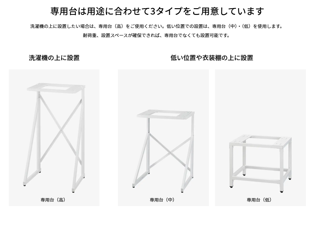 洗濯機の上に乾太くんを設置するタイプで、高さがH1000・H1330・H1480の3種類から選べます。