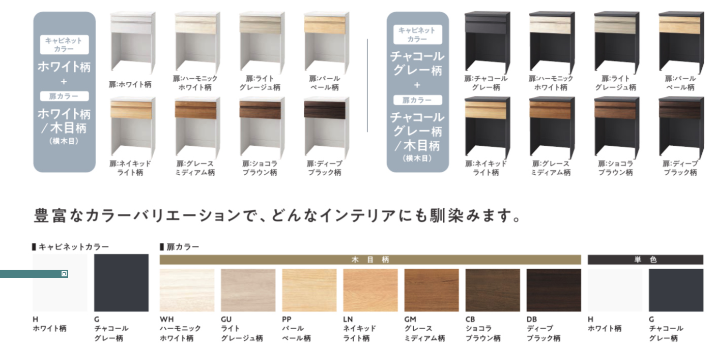 正直悩むほど色はたくさんあります。私も最初見たとき、びっくりしました。クロスとの組合わせなどに関しては、ぜひご相談いただき、一緒に考えていきましょう!