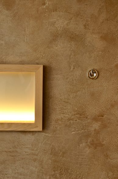 R開口は枠を使わずにクロスで巻いた仕上げも可能ですっきりすっきりとした完成にも可能ですし、写真のように枠を入れてR開口の存在感を出すことも可能です。