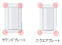 壁紙など貼替するとどうしても、黄ばんだスイッチなどが目立つため、基本的には交換を推奨しております!ではどういったスイッチなどにできるかというと、標準は下記のような白いプレートとなります。角が丸いか角ばっているかの2択となります。