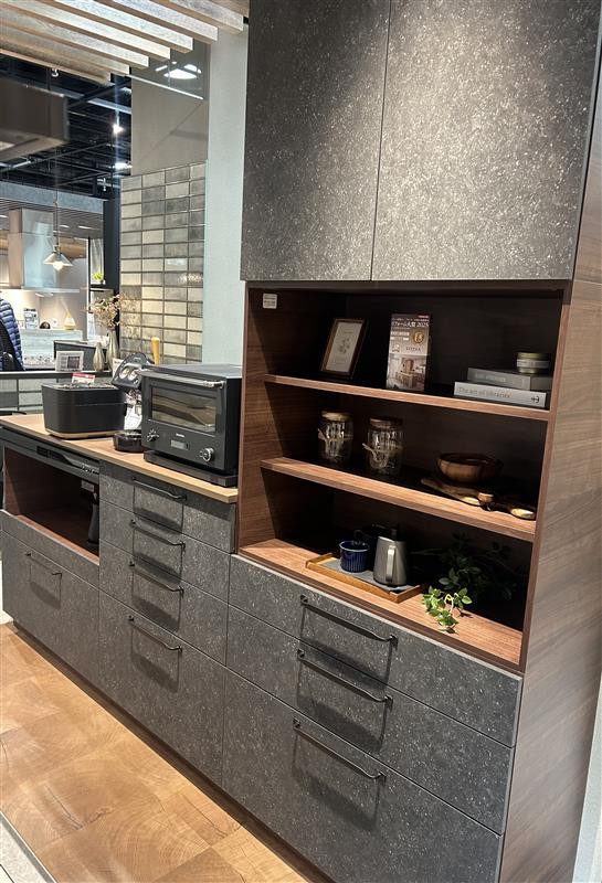 ワークトップはもちろん、扉カラーや天然木シェルフなど