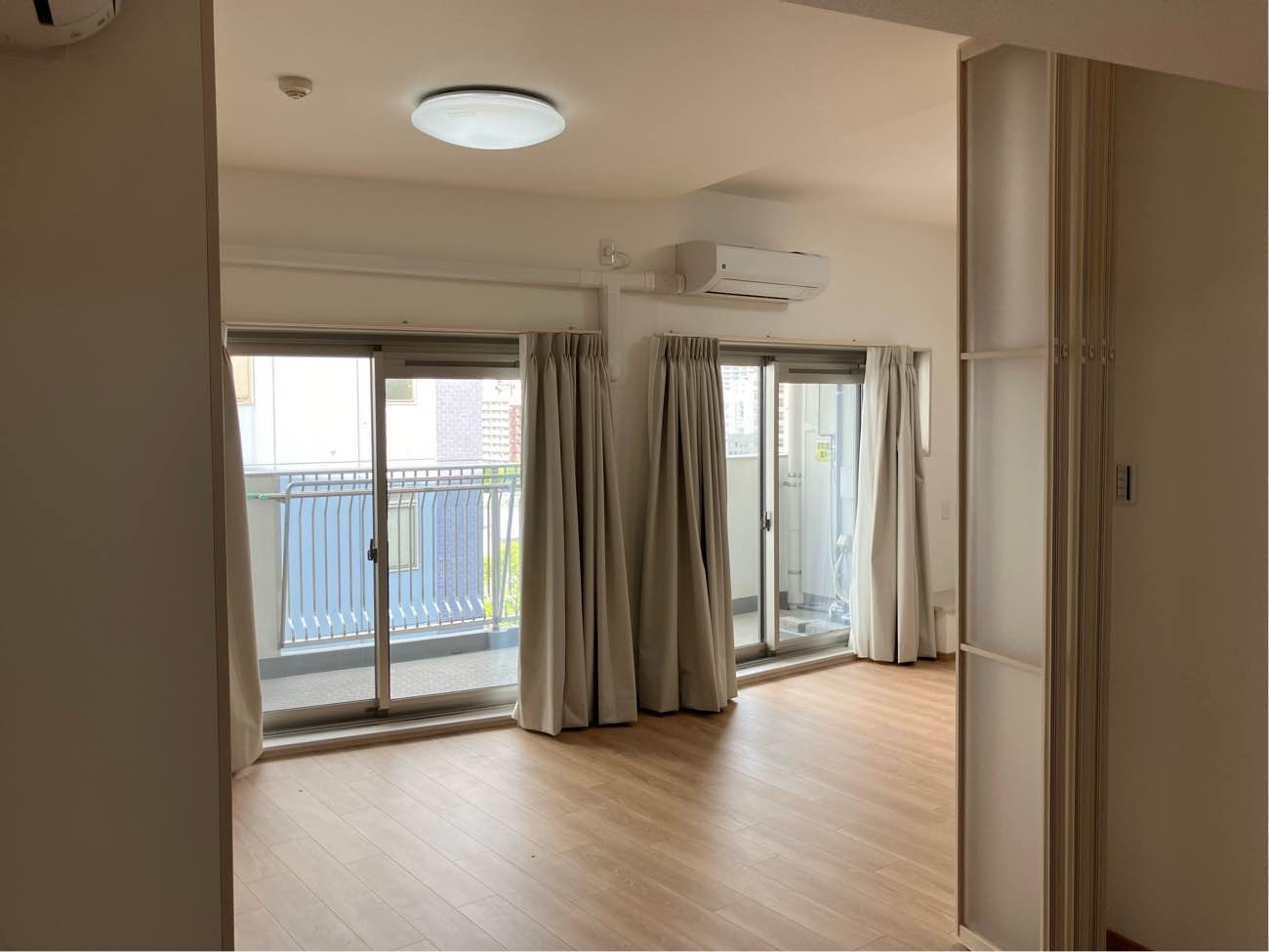 また、施工としては天井と床を水平になおさないとできないですが、納まると写真のようにスッキリした見た目でお部屋のグレードがかなり上がって凄いいいなーと思いましたので、もしご興味があればご検討ください。