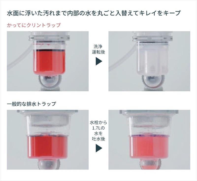 ◆排水トラップの掃除を「自動」でお手伝い ◆ (クリナップHPより引用)