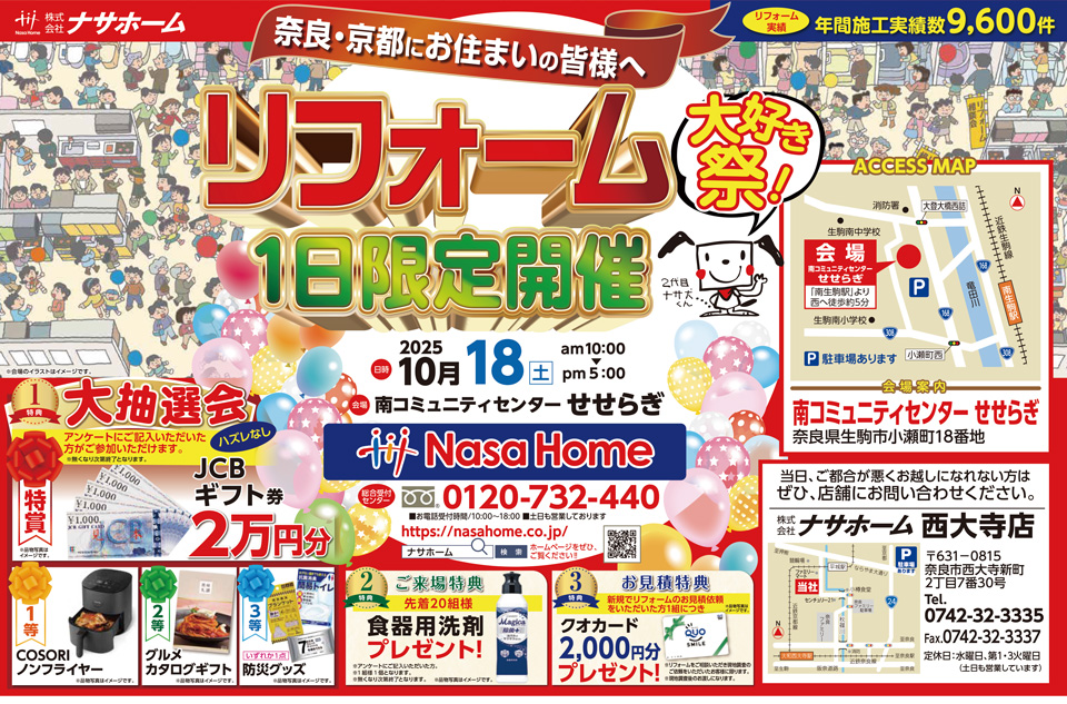 ナサホームではリフォーム&増改築大好き祭を開催いたします。