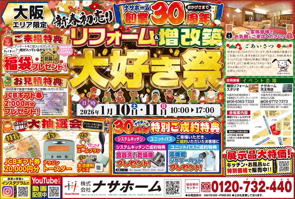 ナサホームでは新春初売りリフォーム&増改築大好き祭を開催いたします。