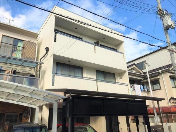 外壁塗装を行い塗膜をつけ汚れが付きにくく目立ちにくい色を選定しました。