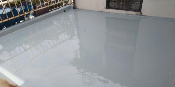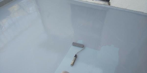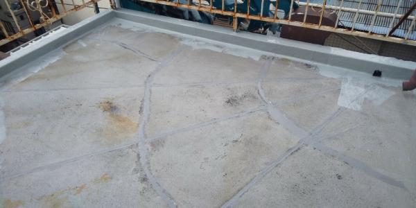 防水面にひび割れが多くみられ、雨漏りの心配がある状態でしたが、Uカット施工とコーキング補修後に塗布防水を行いました。
