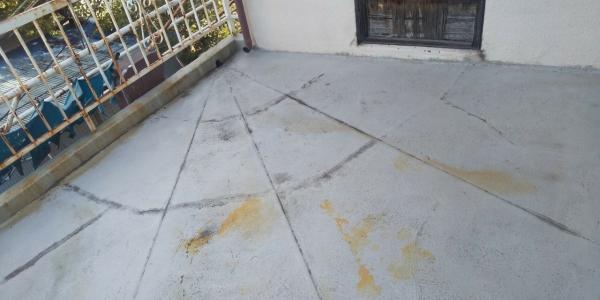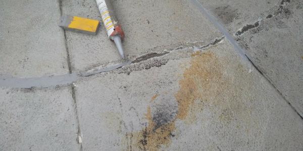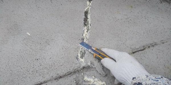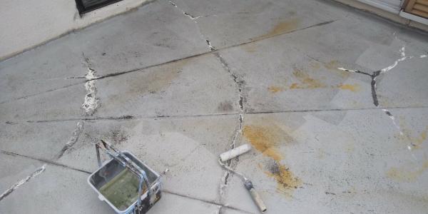 防水面にひび割れが多くみられ、雨漏りの心配がある状態でしたので、Uカット施工とコーキング補修と塗布防水を提案しました。