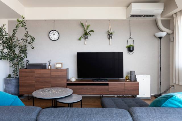 ・グレー×ブラックを基調に、お持ちの家具が映えるシンプルな空間に
