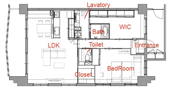・洋室2部屋を寝室へと間取り変更。和室はLDKへと取り込み開放感のある空間を提案。