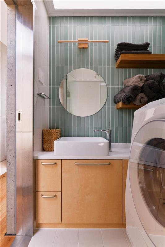 ・洗面は既存のトイレを洗濯機置き場へと変更し、機能性の高い洗面空間へと一新。