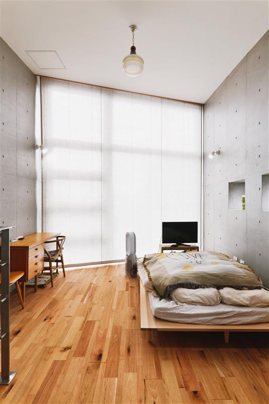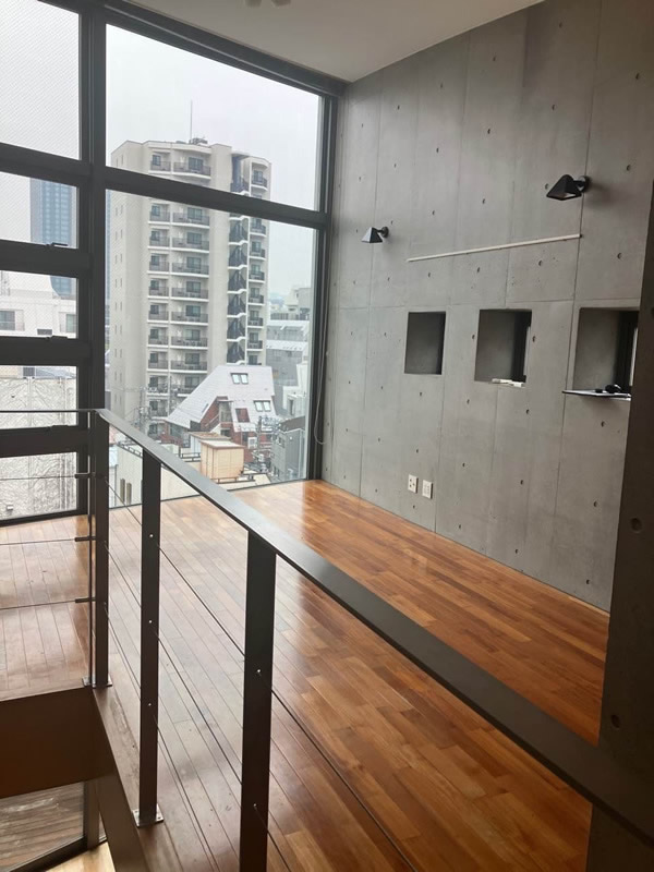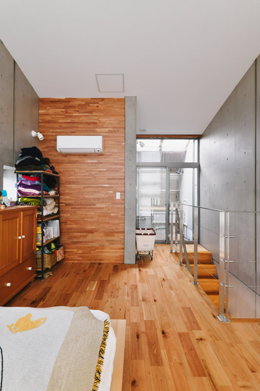 ・既存のコンクリート壁に調和するよう、木目の色味や塗装をプランし素材を活かした。