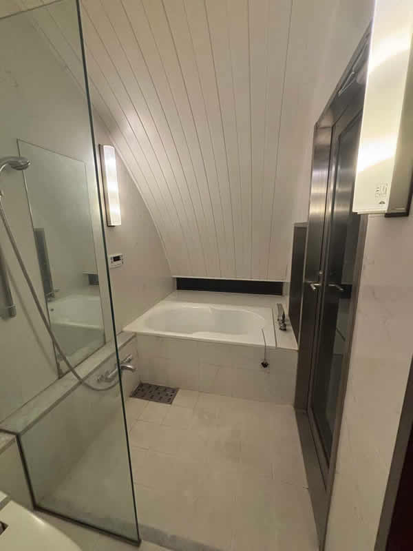 床:LIXIL サーモタイル ストレートⅡ IFT-200 / ST-31 壁:平田タイル FRB-AM 名古屋モザイクタイル CEN-X8600 天井:フクビ バスパネルEX ホワイト |