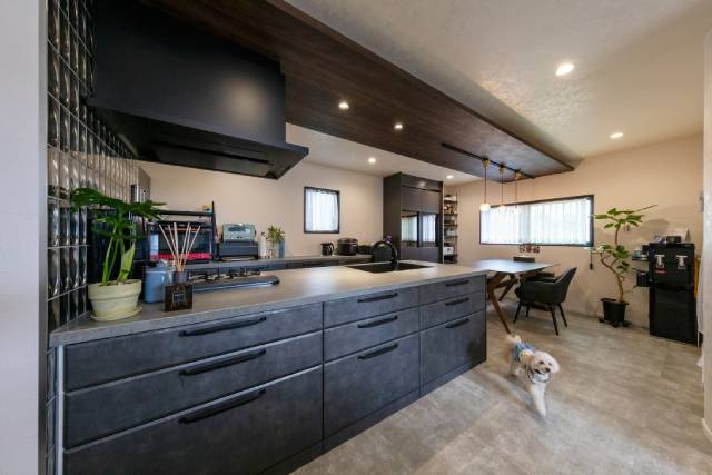 閉鎖的なキッチンから、どこからでもアクセスしやすいキッチンの配置になり、愛犬とくつろぐ時間も増えます。