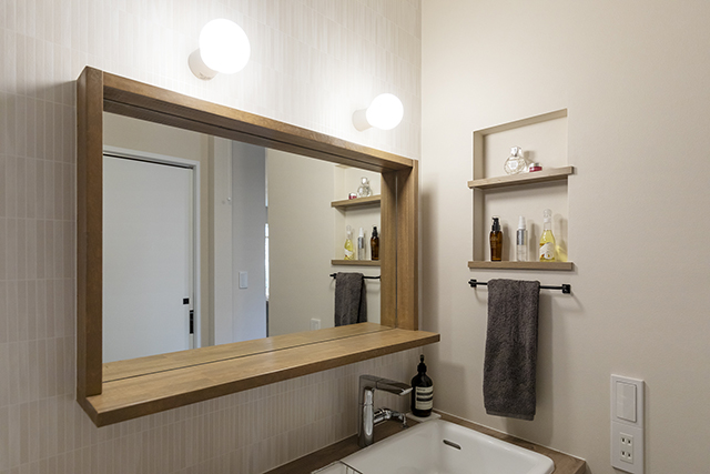 ニッチ収納棚を設け、実用性もデザイン性も満足の洗面空間が完成しました。