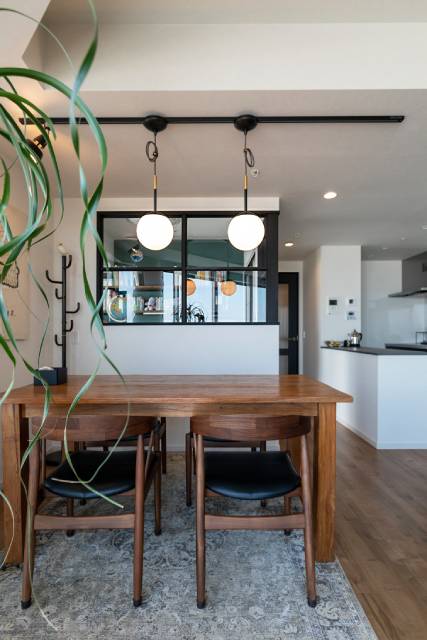 内装はグレー×ブラックをアクセントにシンプルに仕上げることで、お持ちのダイニングテーブルや関家具でご購入されたチェア類が引き立つコーディネートを実現しました。