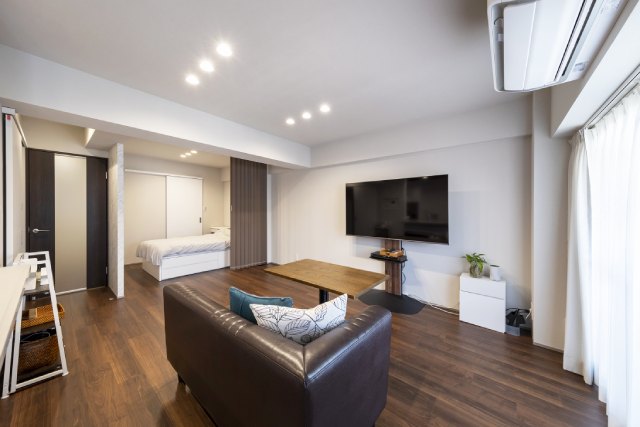 2部屋あった和室を改装し、リビングの一角に寝室を設けました。