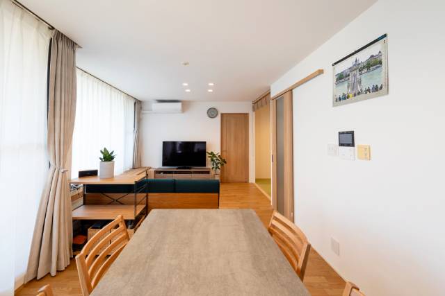 隣接している和室との繋がりにも考慮し、内装は全体的にシンプルなカラーで統一し