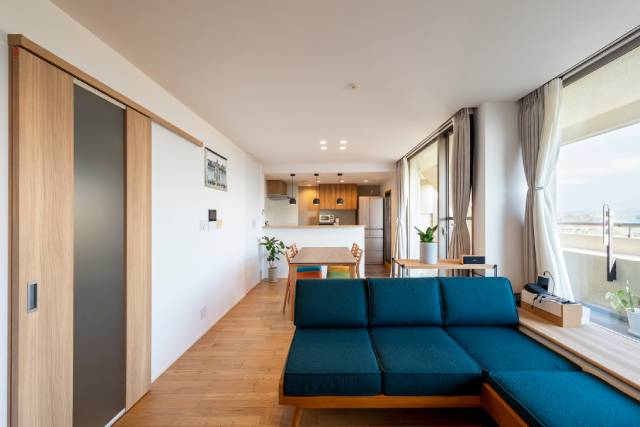 独立していたキッチンを対面にし、眺めを遮らない開放的な空間が完成しました。