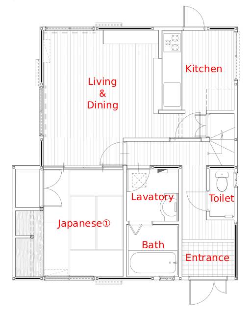 天井:サンゲツ SP9725 壁① :サンゲツ SP9725 壁② :DAIKEN グラビオエッジ ブロッコチャコール柄【テレビ背面アクセント】 床 :Panasonic VSHシリーズ/KEVSMT エイジドチェスナット柄 |