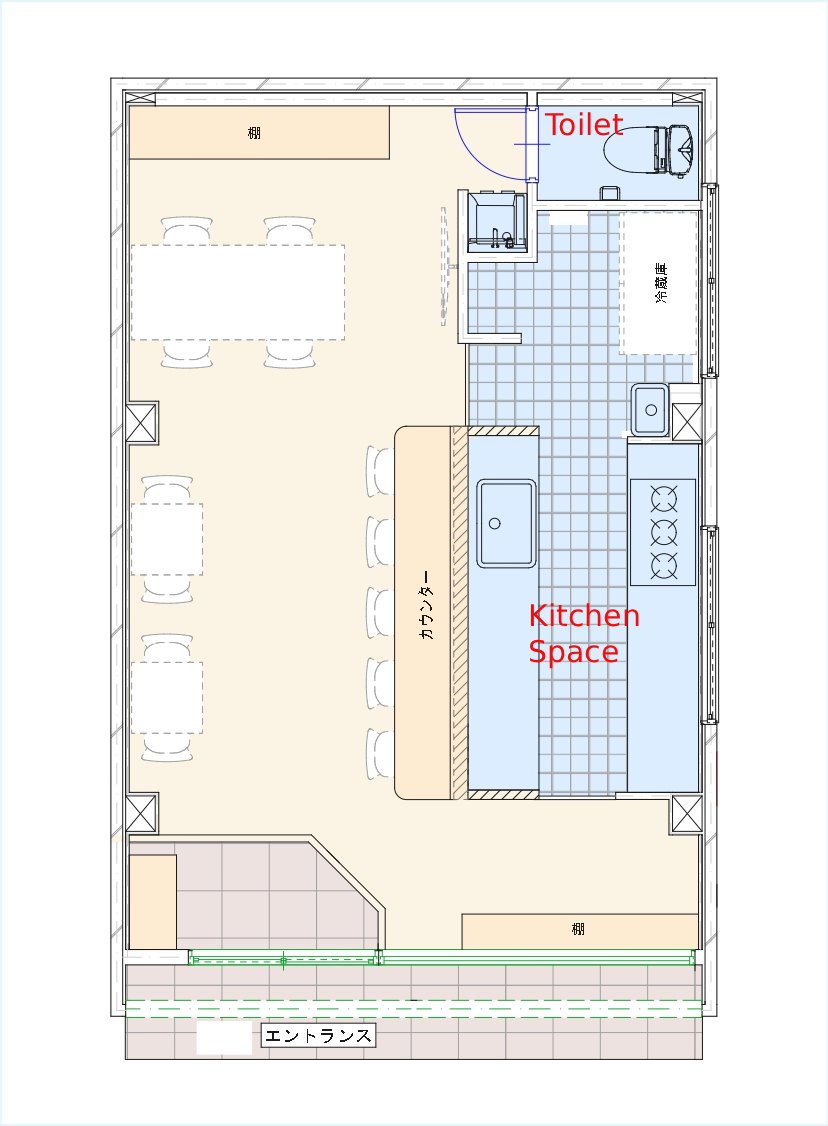 ・軽食屋だけでなく、塾も兼用するので明るい空間にしたい。