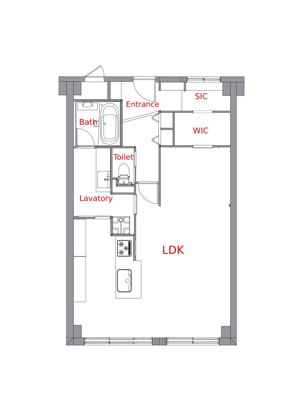 天井:サンゲツ SP2831 壁:サンゲツ SP2831 / BA6409(アクセント) 床:サンゲツ IS867 |